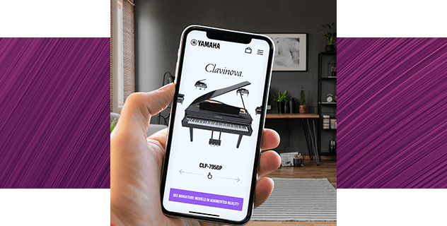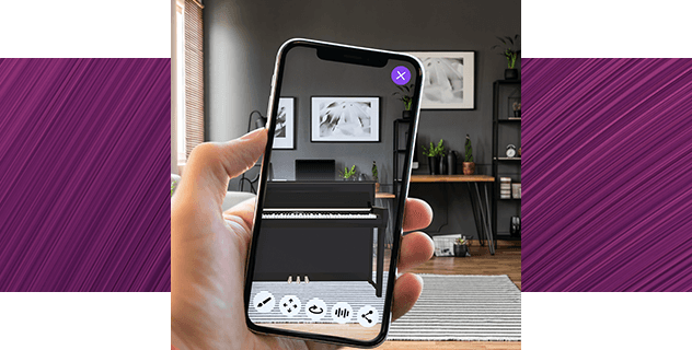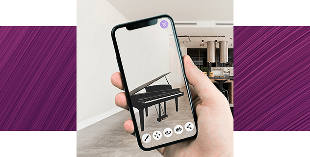 Med appen Clavinova Space är det enklare än någonsin att ta reda på hur en Clavinova CLP/CVP skulle se ut i ditt hem. Med hjälp av förstärkt verklighet kan du se realistiska 3D-modeller av dessa digitalpianon i rummen hemma.