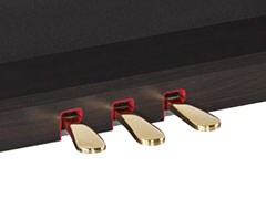 Half-damper pedal control creates more detailed nuance and subtlety when playing, similar to pedaling on a grand piano. This feature allows for continuously increasing lengths of sustained notes, from slight to full, as the sustain pedal is depressed. Stereo Sustain samples provide mellow reverberations when the player depresses the damper pedal. Similarly, Damper Resonance provides broad and deep resonance when the pedal is used. The result is more realistic sound, similar to that of an acoustic piano. It is possible to detect the subtle changes that occur when the players begins to press the pedal while striking a key.