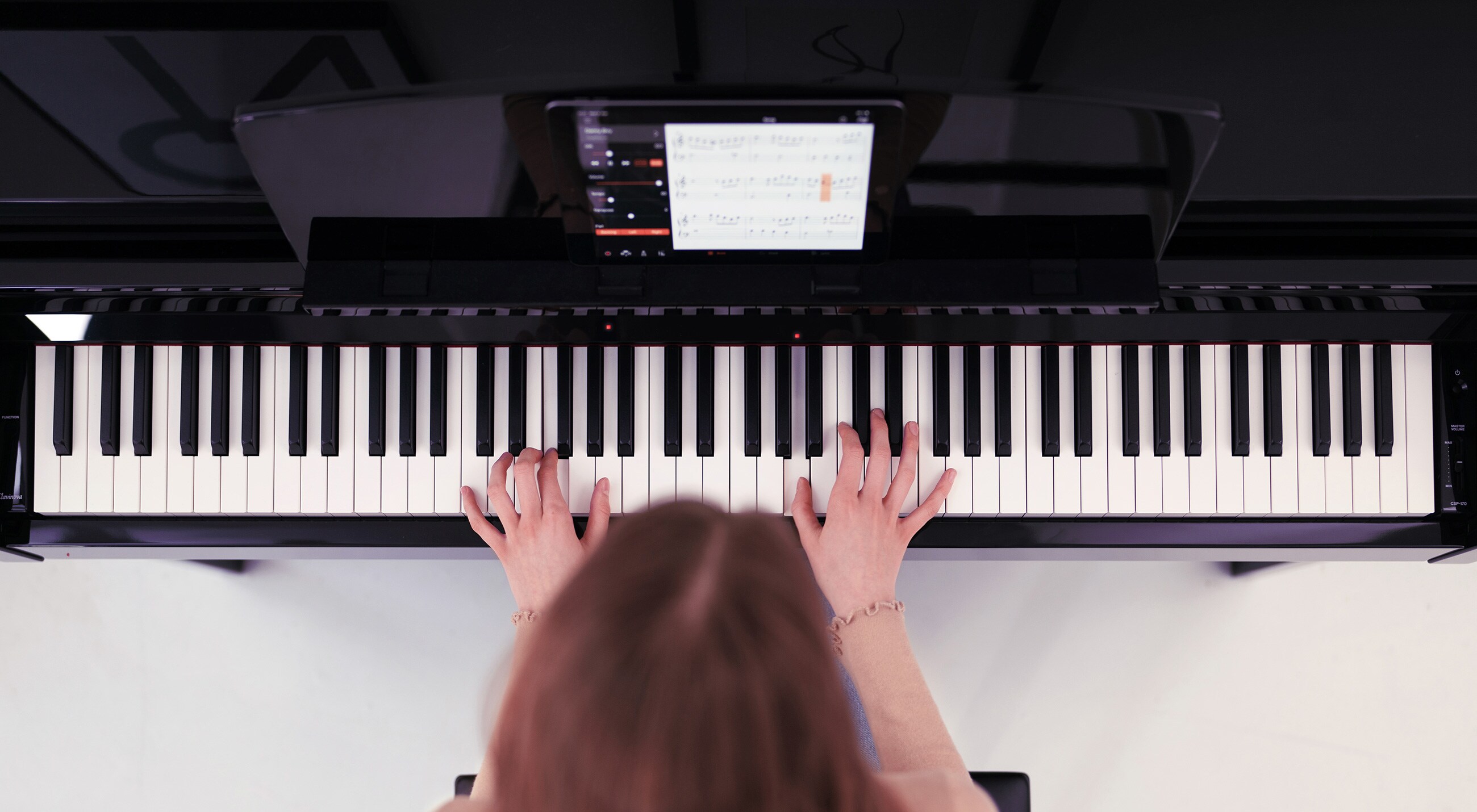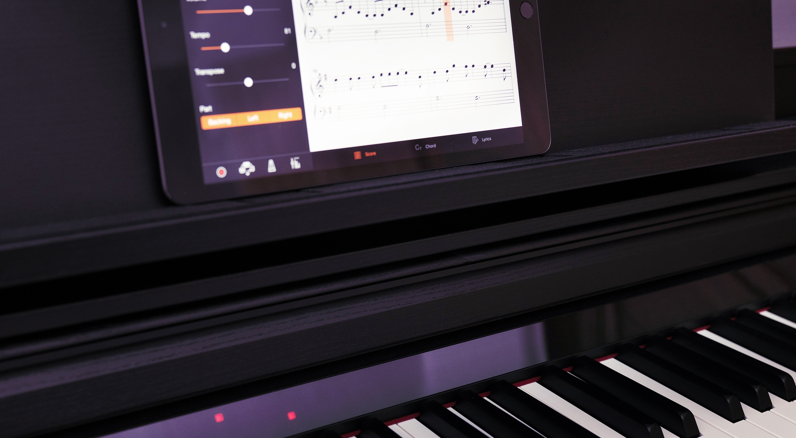 Ladda in dina låtar till Smart Pianist appen och funktionen "Audio to Score" analyserar ackorden och skapar automatiskt noter av dina låtar.