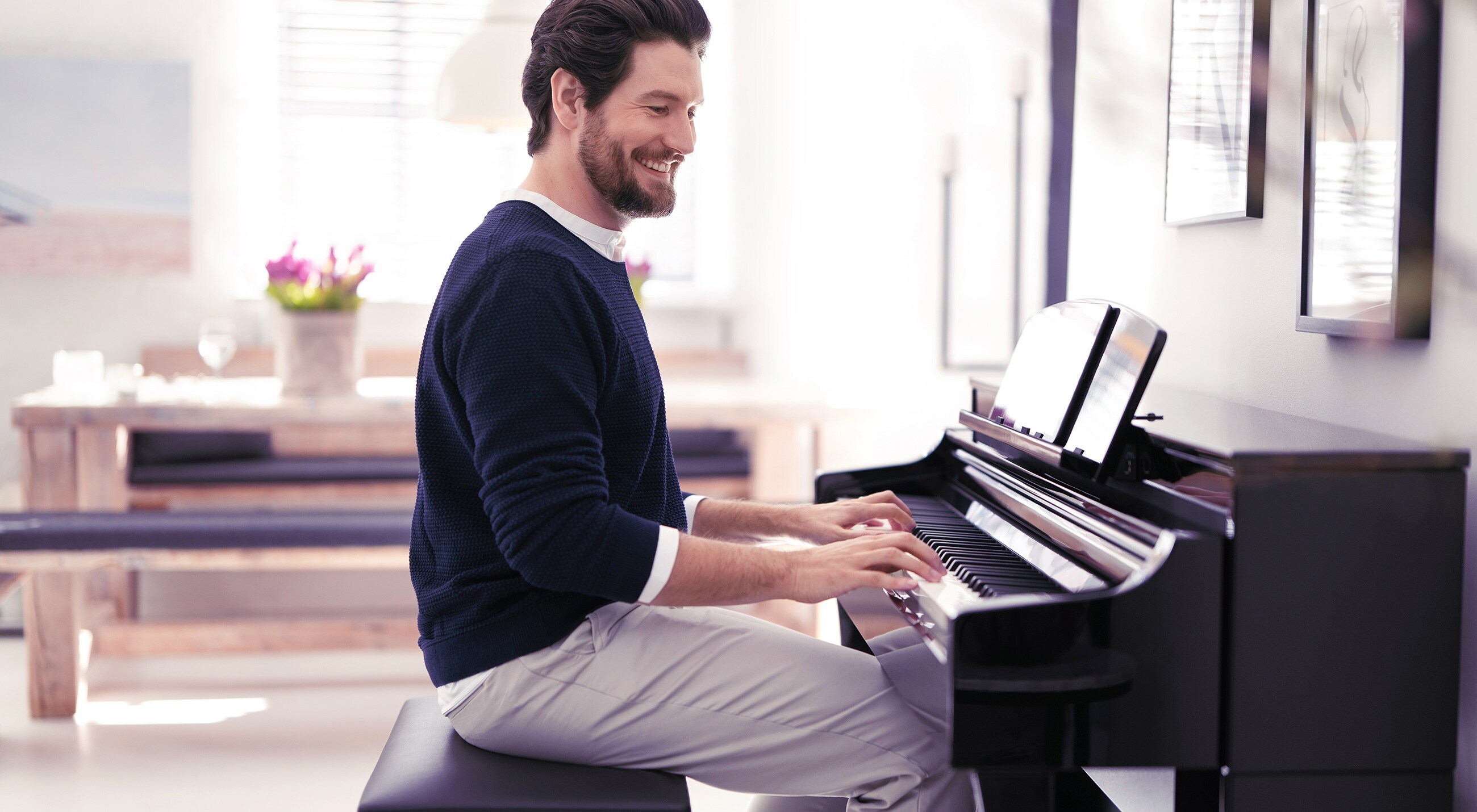 Clavinova är en innovativ serie av digitala pianon som har fortsatt att utvecklas samtidigt som man försöker få en närmare touch och ton som liknar en konsertflygel - den ultimata symbolen för pianokvalitet. Denna autentiska pianoupplevelse är en produkt av kunskap och expertis som vi på Yamaha har skaffat oss på över 100 år av tillverkning av akustiska pianon. Clavinova digitala pianon använder en toppmodern teknik för att uppnå pianokvalitet, och erbjuder en inbjudande spelupplevelse som är perfekt för spelare på alla nivåer. Clavinova efterliknar piano och ton på en flygel för att göra övergången från digitalt piano till ett akustiskt piano väldigt smidigt och enkelt.