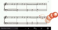 En studsande boll visar var du befinner dig i partituren medan du spelar.