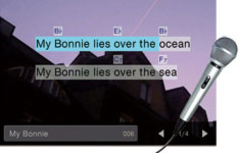 Bjud in vänner och sjung karaoke till låtar som redan finns på din Clavinova eller hämta fler på Internet. Texterna visas på skärmen* och bokstäverna ändrar färg allteftersom låten fortskrider. Du kan också visa texterna på en stor TV-skärm så att alla på festen kan delta. * Endast om text ingår i låtens data.