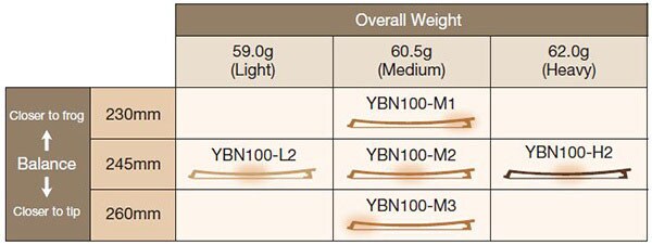 Using carbon, which allows for precision design and manufacturing, we have produced 5 bow variations with different weights and different balances to provide players with a wider range of bows from which to choose.
