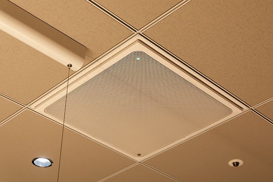A ceiling array microphone equipped with unique audio signal processing technology that enables high-quality communication
