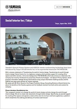 With a mission statement of ‘Transforming the world of interior design. Transforming the world through interior design’, Social Interior Inc. Is a Japanese company which provides support for creating office spaces and other services. At its new headquarters THE MUSEUM, which also serves as a showroom, the company has recently introduced two proprietary Yamaha technologies - the Speech Privacy System, which prevents information leakage during conversations using unique information masking sounds, and the ADECIA one-stop audio solution for remote meetings.