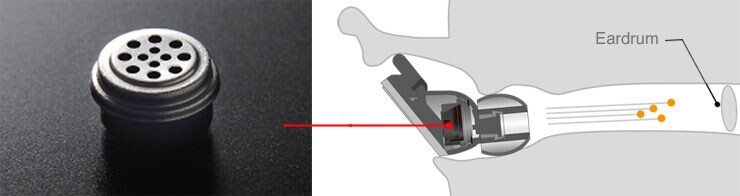 Öronpropparna är tillverkade av två typer av kiselmaterial - en hård och en mjuk. Ljudpassagesektionen använder hårda kisel ger en bra kombination av flexibilitet och styrka. Den behåller sin form även när de sätts in i öronen och passar perfekt till formen av hörselgången. Förutom att skapa en bekväm passform, förhindras ljudläckage som kan försämra ljudkvaliteten.