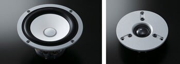 Varje högtalare är utrustad med en 3 cm (1-1 / 4 "") soft dome diskant med en beläggning på membranet och en speciellt tillämpad gjutteknik. Detta ger både exceptionellt bra återgivning av höga frekvenser. Som baselement används Yamahas 13 cm (5-1 / 4 "") diameter A-PMD (Advanced Polymer Injected Mica Diaphragm) koner, som fått mycket bra kritik världen över för sina prestationer i Soavo-serien. Detta resulterar i ett kraftfullt, naturligt ljud med utmärkt mellanregister med tydlighet och bra basåtergivning.