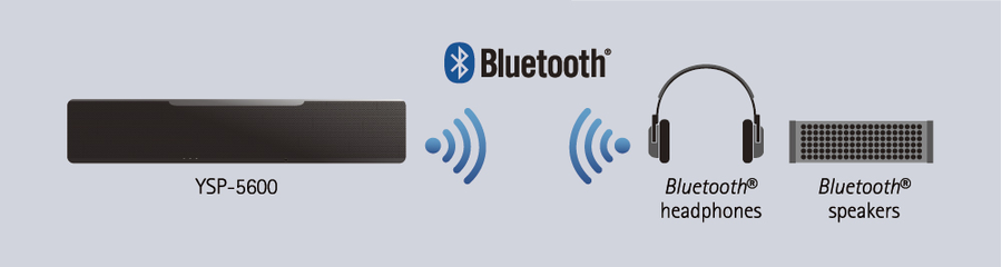 YSP-5600 är utrustad med den senaste Bluetooth tekniken, som gör det enklare än tidigare att trådlöst njuta av musik. YSP-5600 kan inte bara ta emot Bluetooth, du kan även skicka ut Bluetooth. Smidigt om du vill streama musik från YSP-5600 till ett par Bluetooth hörlurar eller till en Bluetooth-högtalare.