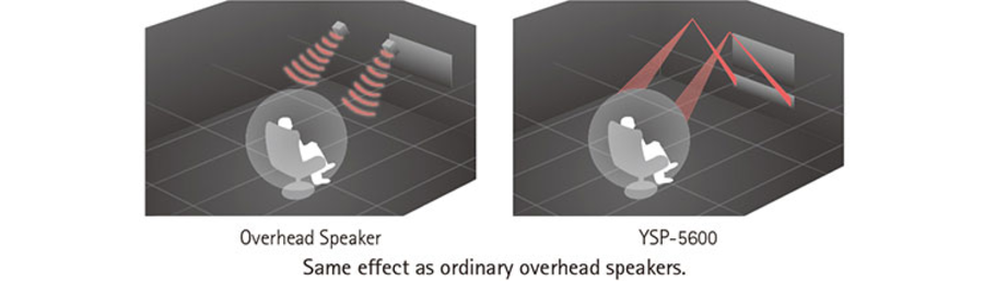 Takkanalernas ljud skapas genom att 6 högtalare som placerats i varje ände av enheten (totalt 12 st) som skjuter ljud upp mot taket. Array högtalarna, är 28mm i diameter. För att ge ljudstrålen maximal effekt, är de är monterade på en vinklad baffel för att styra ljudstrålen uppåt. Ljudet vid lyssningspositionen är precis lika bra som om verkliga högtalare var monterade i taket. Med YSP-5600 får du bra ljud utan besväret att dra högtalarkabel och montera högtalare.
