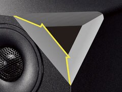 Högtalarkabinettet är byggt i tjock MDF för att bli stabilt och för att materialet har rätt akustiska egenskaper. Konstruktionen med tre-vägs gering är den som av tradition återfinns i Yamahas High-End högtalare.