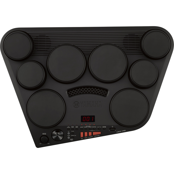 DD-75 är ett digitalt trumset med 8 anslagskänsliga pads och två fotpedaler. Högkvalitativa trum- och percussionljud blandas med orkesterljud för att erbjuda ett brett spektrum av möjligheter. AUX IN-jacket låter dig koppla till en telefon eller mp3-spelare och jamma tillsammans med dina favoritmusiker.