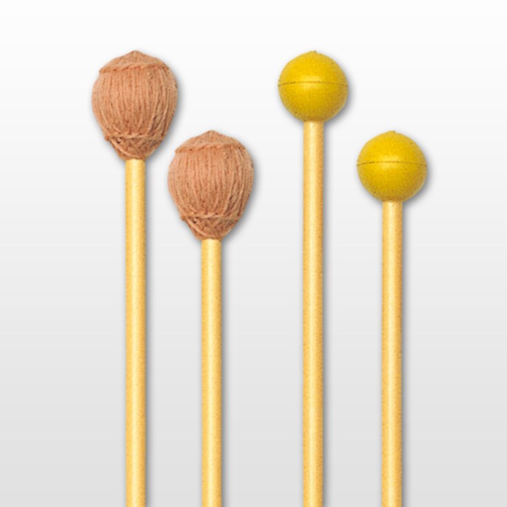 Yarn wound heads produce a pleasingly mellow tone which is excellent for use on marimbas. These mallets are also effective for use on xylophones and vibraphones.